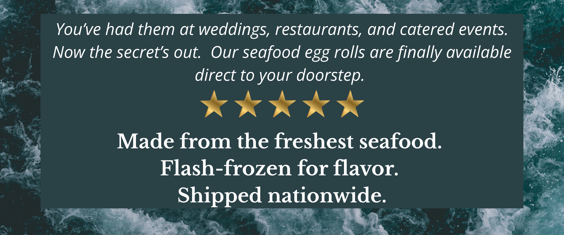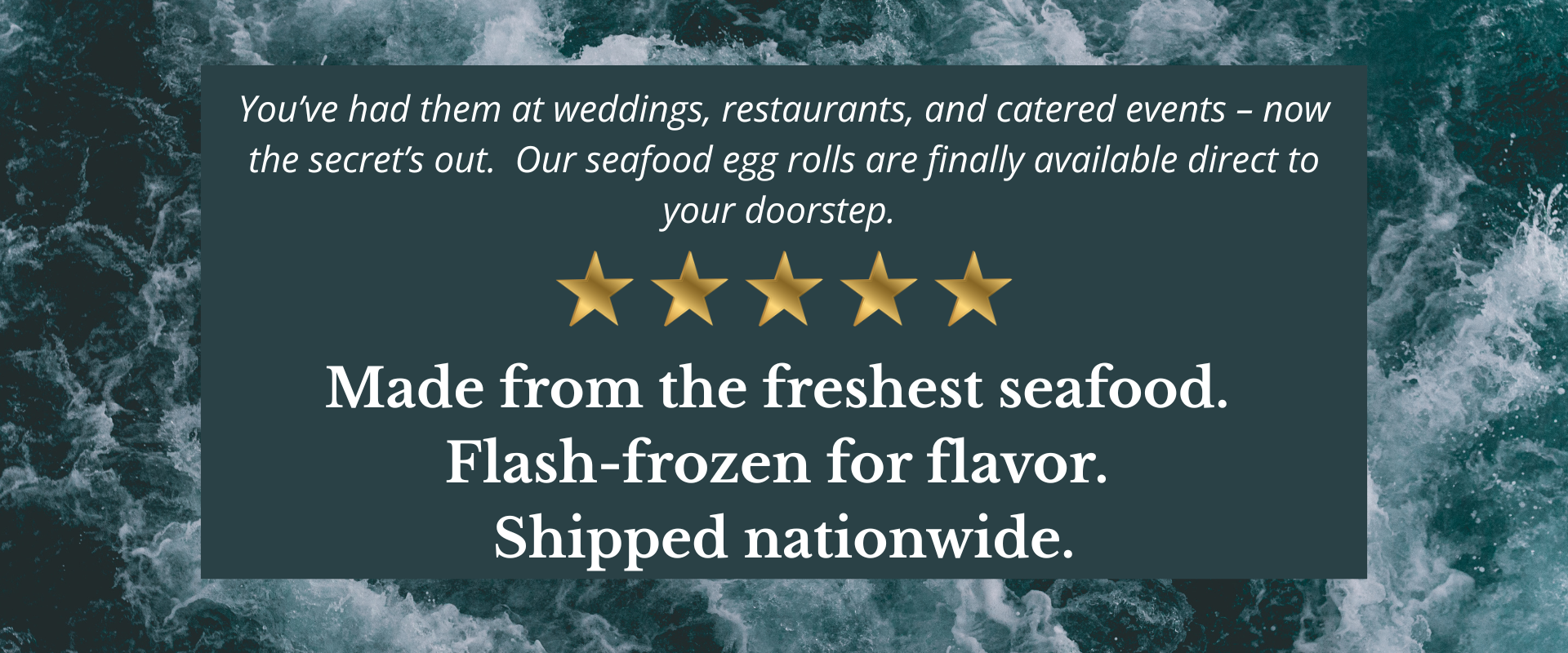 Seafood Egg Rolls is your go-to online destination for premium, chef-crafted seafood egg rolls. For over 12 years, we’ve been trusted by caterers and restaurants to deliver the freshest, most flavorful rolls -- and now, we’re bringing that same quality straight to your door. We make it simple to order hand-rolled egg rolls filled with the finest crab, lobster, and shrimp and have them shipped anywhere in the United States. Every order is prepared with care, packed fresh, and shipped the same day so you can enjoy authentic seafood flavor no matter where you are. From our jumbo lump crab egg rolls to our signature seafood (crab, shrimp and lobster) egg rolls, we guarantee your rolls will be generously stuffed, seasoned to perfection, and packaged with care for the ultimate at-home indulgence.